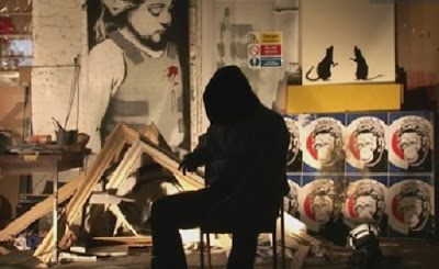 ¿Existe Banksy? ¿Qué o a quién representa? ¿Es una entidad individual o un grupo de juramentados para acabar con el mercado del Arte? ¿Por qué oculta su cara? ¿Más allá de la eficacia plástica de sus creaciones, se esconde algún valor en sus obras? ¿Dónde nació, dónde vive, en qué cree, cuál es su ideología? A estas y a otras muchas preguntas no da respuesta alguna Exit through the gift shop. Y no las da porque esto no es un documental sino una experiencia artística. Y en cuanto experiencia lo suyo no es contestar, sino interrogar e interrogarse.